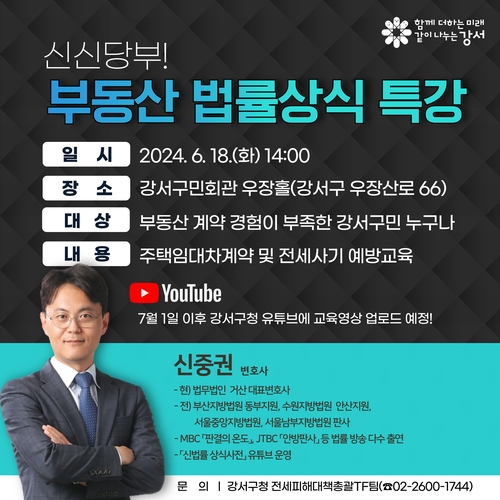 구는 오는 6월 18일 강서구민회관에서 '신신당부! 전세사기 예방을 위한 부동산 법률 상식 특강'을 진행한다고 밝혔다.