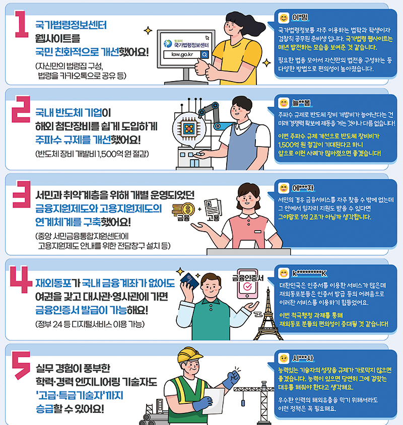 5위는 실무 경험이 풍부한 학력·경력 엔지니어링 기술자도 ‘고급·특급 기술자’까지 승급(산업부)할 수 있게 하는 것이었다.