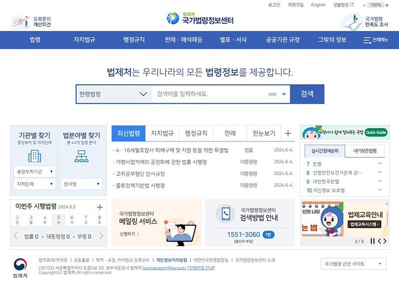 국가법령정보센터 웹사이트를 국민 친화적으로 개선한 법제처의 사업이 국민이 뽑은 적극행정 우수과제 1위로 선정됐다.