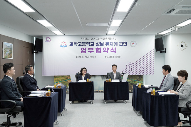 성남시와 성남교육지원청은 6 월 7 일 특수목적고인 과학고등학교를 지역에 유치하기 위해 업무 협약을 체결했다 .