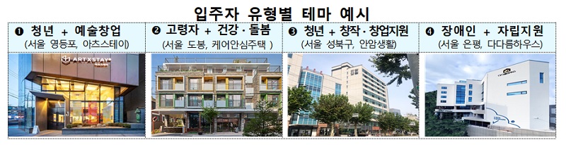 최근 청년 문화예술인 지원(서울 영등포 아츠스테이), 장애인 자립지원(서울 은평 다다름하우스) 등 다양한 수요맞춤형 주택 모델로 거듭나고 있다.