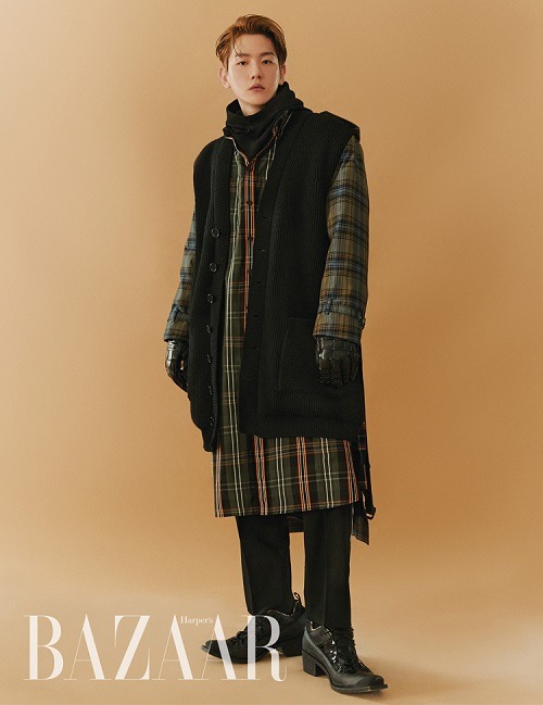 버버리의 가을, 겨울 컬렉션을 완벽히 소화하며 <바자>의 우아함과 백현의 부드러운 매력이 돋보이는 컷들은 사람들의 눈길을 사로잡기에 충분했다.