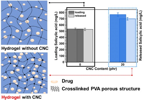 연구팀은 ▲생체적합성이 높은 고분자와 나노셀룰로오스를 이용하여 많은 양의 수분을 머금을 수 있는 하이드로겔 형태의 상처 치유제를 제조하였으며, ▲나노셀룰로오스의 표면에서 약물의 흡착 및 탈착되는 원리를 구명함으로써 서방형 약물 방출에 적합한 하이드로 겔 구조를 설계하였다.