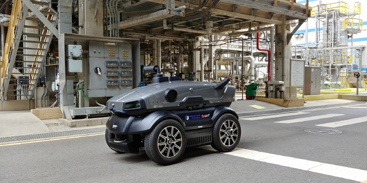 충남 서산 현대오일뱅크 공장 부지 내 주요 설비 점검하는 '5G 자율주행로봇' 시연
