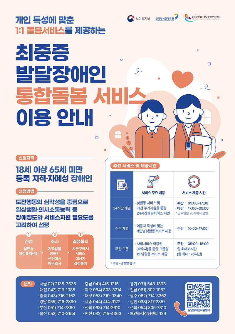 보다 자세한 내용은 복지부 상담센터(129), 읍면동 행정복지센터와 17개 시·도별 지역발달장애인지원센터에 문의할 수 있다.