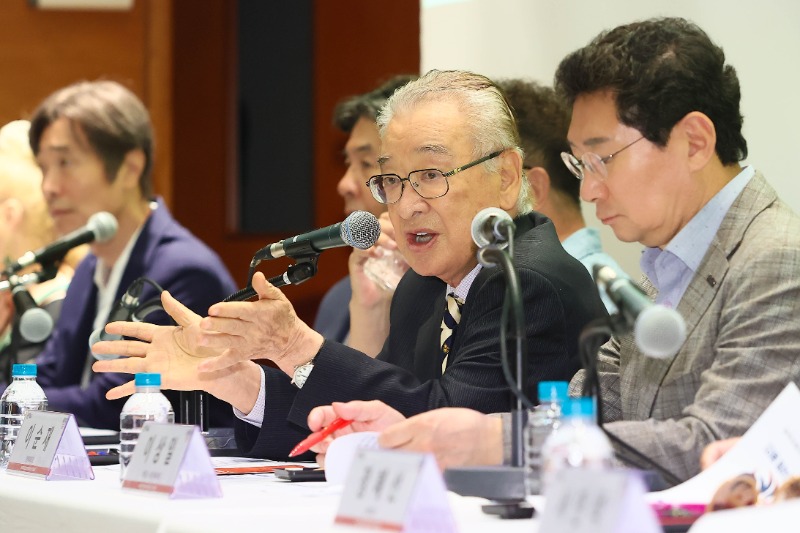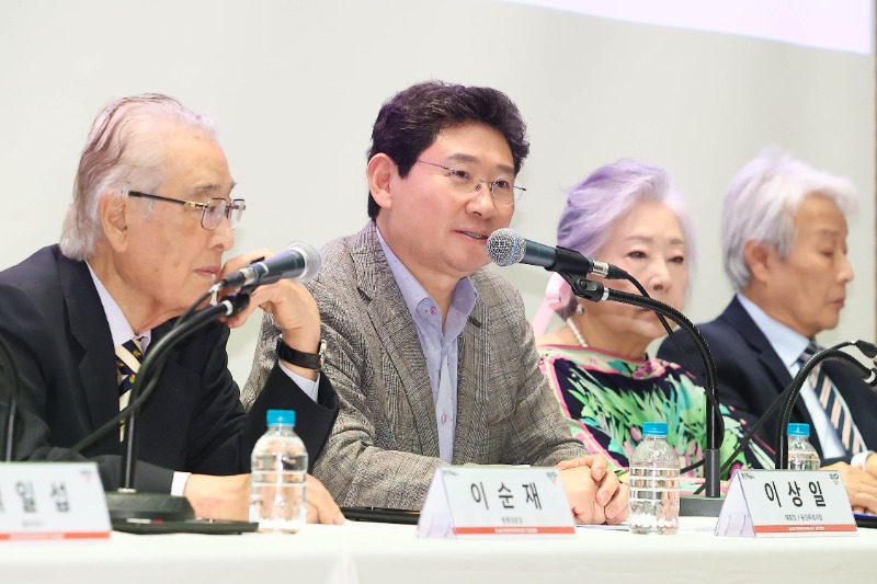 이상일 시장과 이순재 명예대회장 등 연극제 주요 인사 참석해 언론과 질의응답 가져