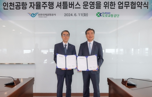 인천국제공항공사는 11일 공사 회의실에서 도로교통공단(이사장 직무대행 서범규)과 '인천공항 자율주행 셔틀버스 운영을 위한 업무 협약'을 체결했다고 밝혔다.