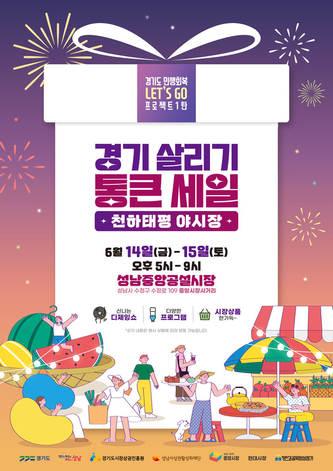 성남시가 오는 6 월 14 일과 15 일 양일간 오후 5 시부터 9 시까지 성남 중앙공설시장과 현대시장 일대에서 ‘ 천하태평 야시장 ’ 을 개최한다 .