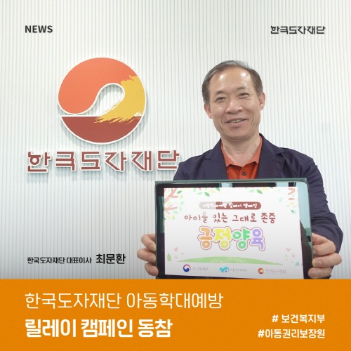 한국도자재단은 지난 13일 아동학대 예방 및 긍정양육 문화를 확산하기 위해 보건복지부가 주관하는 아동학대예방 릴레이 캠페인에 동참했다.