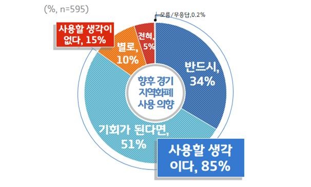 아울러 경기지역화폐를 사용하고 있다고 답한 응답자 가운데 85%가 ‘향후에도 사용하겠다’고 응답해 경기지역화폐의 고객 충성도가 매우 높은 것으로 조사됐다.