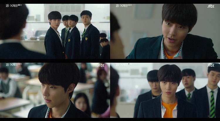 지난 21일 방송된 1회에서는 구자성과 18년 전으로 돌아가 다시 고등학교를 다니게 된 고우영이 맞붙어 일촉즉발의 신경전을 펼쳤다. 급식실에 등장한 구자성은 고우영이 자신의 놀림거리였던 홍시우(려운 분)를 감싸고 돌자 기선제압을 시도했다. 하지만 고우영은 꺾이지 않는 모습으로 오히려 구자성을 웃음거리로 만들었고, 이에 구자성은 서늘한 눈빛을 내뿜으며 긴장감을 폭발시켰다.