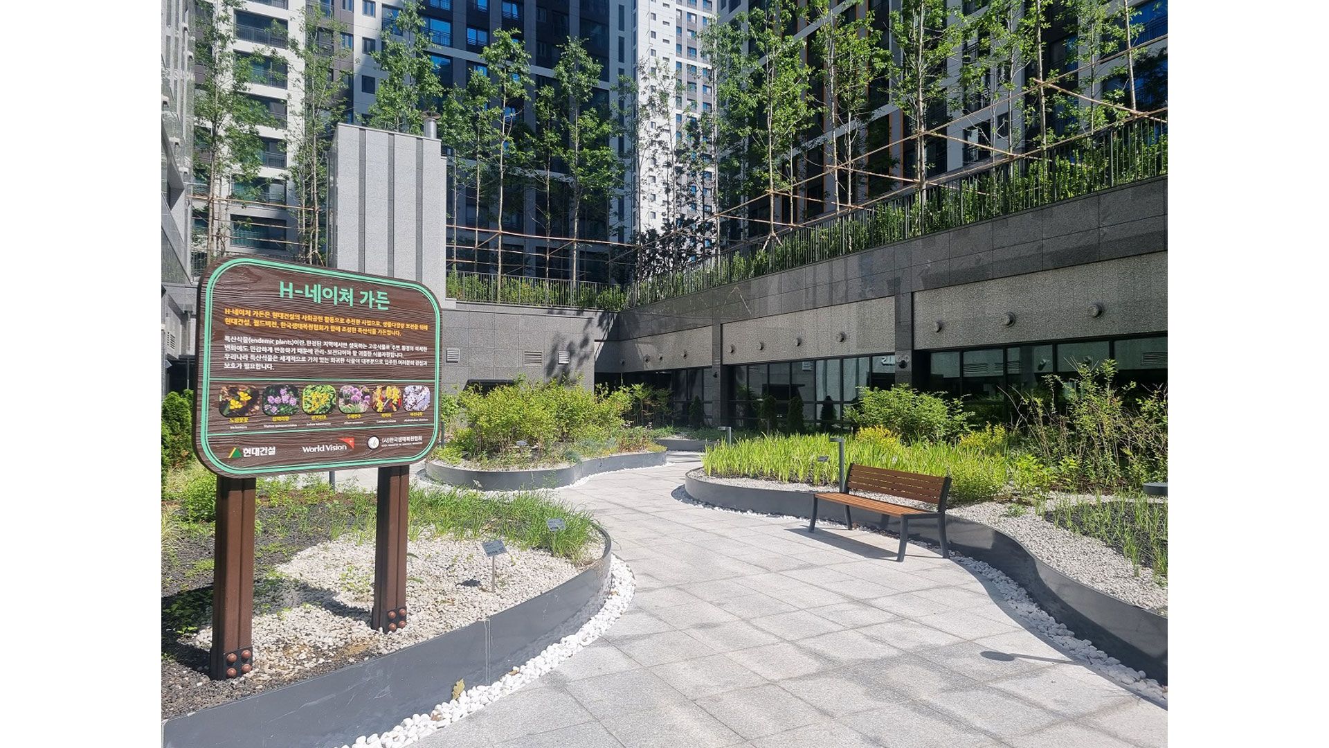 현대건설은 힐스테이트 용인 둔전역 단지에 미선나무, 히어리 등 12종의 특산·자생식물 약 4,000본을 식재한 공원 ‘H-네이처가든’을 시작으로 매년 조성 단지를 선정해 추진하고자 한다. 또한, 월드비전 및 환경·조경 전문기관과 연계해 지역 주민들이 직접 식물 종을 지속 유지 및 관리할 수 있도록 생물다양성 보호 전문 교육 프로그램도 운영할 방침이다.