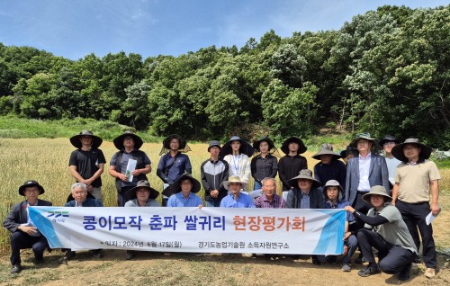경기도농업기술원 소득자원연구소는 17일 연천군 청토귀리회 회장 송이진 농가에서 쌀귀리와 콩을 이용한 이모작 재배법 현장 평가회를 실시했다.