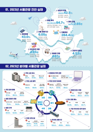 서울시와 서울관광재단은 2023년 한 해 서울을 방문한 외국인을 대상으로 한 관광실태조사의 결과를 발표했으며, 코로나19 이전보다 전반적으로 관광객의 체류기간, 소비금액 등이 증가한 것으로 나타났다.