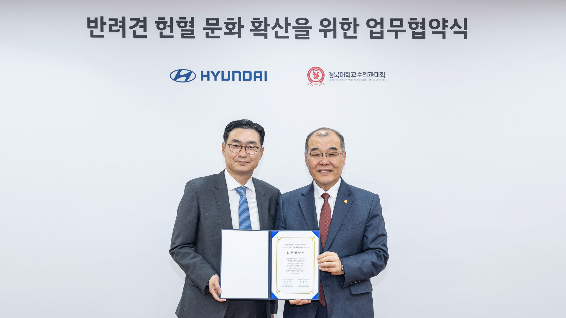 현대자동차가 ‘2024 아임도그너’ 캠페인을 전개하며 경북대학교와 ‘아임도그너(I’M DOgNOR) 헌혈센터’ 개소를 위한 업무협약(MOU)을 체결했다. (※ DOgNOR : 반려견(DOG)과 헌혈 기부자(DONOR)의 합성어로, ‘헌혈견’을 의미)