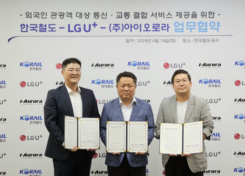 LG유플러스는 18일 ‘한국철도공사(코레일)’, 선불 금융 플랫폼 기업 ‘아이오로라’와 함께 외국인 관광객 전용 교통패스 개발을 위한 MOU를 체결했다고 18일 밝혔다.