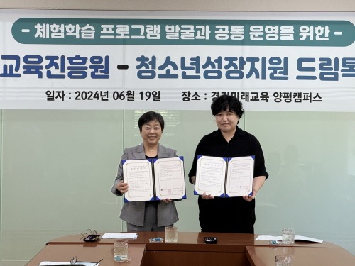 경기도평생교육진흥원과 청소년성장지원 드림톡이 6월 19일 경기미래교육 양평캠퍼스에서 청소년 활동 프로그램 지원을 위해 업무협약(MOU)을 체결했다.