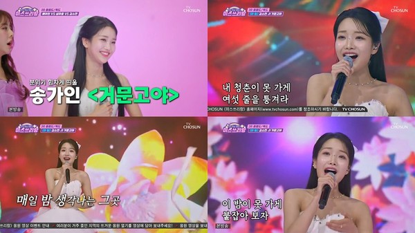 또한 김소연은 "승패를 좌우하는 데는 분위기가 제일 중요하다. 분위기를 다 띄울 수 있는 송가인 선배님의 '거문고야'를 준비했다"며 대결에 지지 않겠다는 강한 의지를 드러냈고 이어진 '거문고야' 무대에서 필살기인 콧소리를 마음껏 선보이며 자신만의 개성 가득한 무대를 완성했다.