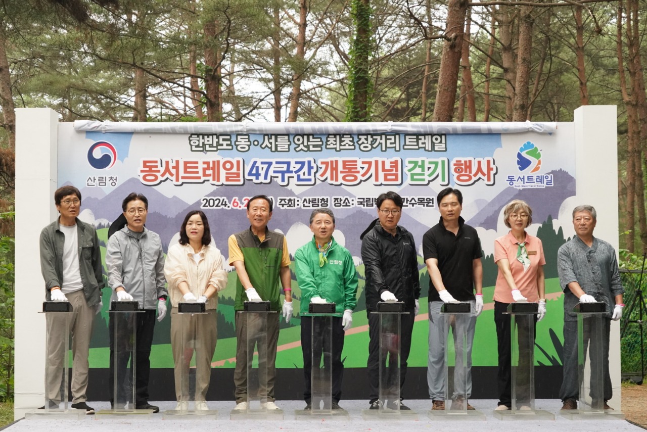 남성현 산림청장은 “그 동안 잘 가꾸어온 숲의 가치를 국민들께 되돌려 드릴 수 있게 됐다”라며, “동서 트레일을 세계적인 숲길 관광명소로 육성해 지역경제를 활성화하고 지역소멸을 막는데 기여해 나가겠다”고 말했다.