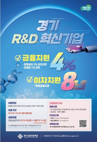 이번 ‘경기 R&D 혁신기업 특별금융’은 특별융자와 특례보증을 결합한 저금리 특별금융이다.