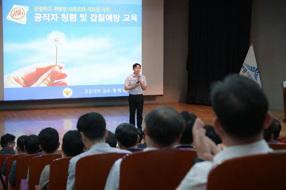 이어 국민권익위원회 청렴교육강사 장재성 교수가 ‘청탁금지법, 행동강령의 직무상 갑질금지’ 등을 주제로 사례 중심의 강의를 통해 청렴에 대한 이해도를 높였다.