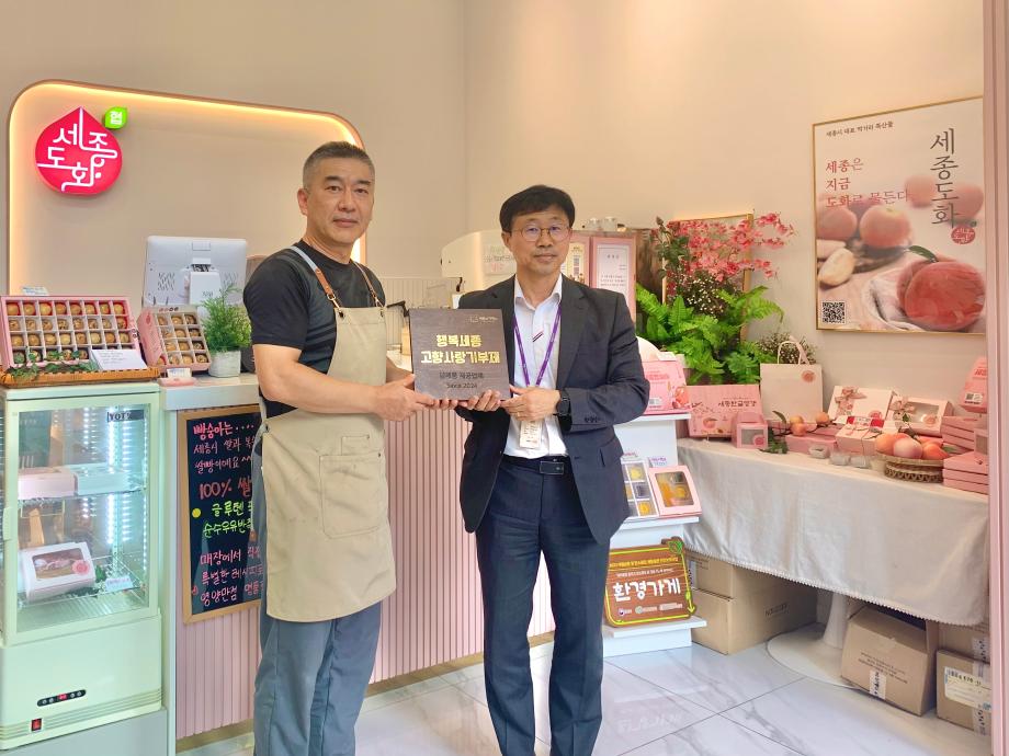 이번에 전달된 현판은 세종 고향사랑기부제 공식 협력 파트너로서 답례품 제공 업체의 자긍심을 고취하고, 업장 방문객 대상 고향사랑기부제 제도를 홍보하는 목적으로 제작됐다.