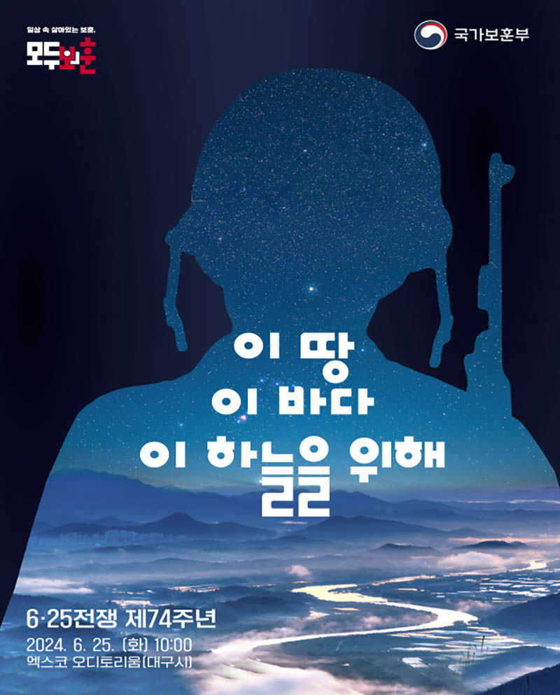 국가보훈부는 오는 25일 대구 엑스코(오디토리움)에서 ‘6·25전쟁 제74주년 행사’를 개최한다고 24일 밝혔다.