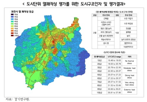 연구원이 최근 과천시를 대상으로 진행한 연구에서는 라이다(LiDAR) 기반의 3차원 정보(수목, 건물, 지형, 일사량 등)를 구축하여 고도화된 열 쾌적성 평가 기반의 취약지역 도출하고, 주거용 건축물의 인구구조(인구수, 연령) 공간정보를 구축하여 중첩 분석함으로 해당 도시의 열 쾌적성 등급별 인구와 열 쾌적성 취약지역에 거주하는 인구수 및 연령 구조를 분석하는 것이 가능한 것을 확인하였다. 현재 같은 방법론으로 경기도 전역의 취약지역과 인구구조 정보를 작성 중이며, 이후 경제적 특성, 건강 정보 등을 반영한 취약계층의 공간정보를 구축하여 폭염 대응 정책의 효과적 추진을 뒷받침할 정보를 경기도와 31개 시군에 제공할 예정이다.