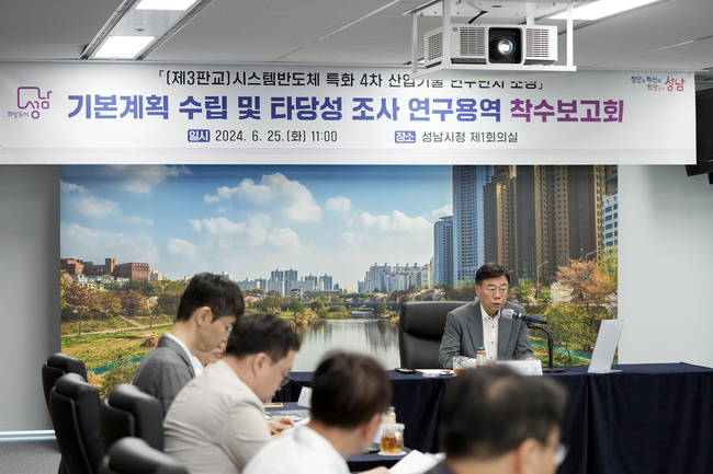 성남시가 25 일 오전 11 시 시청 제 1 회의실에서 4 차산업 발전의 기반이 되는 제 3 판교 시스템반도체 특화 4 차 산업기술 연구단지 조성 기본계획 수립 용역 착수보고회를 개최했다 .