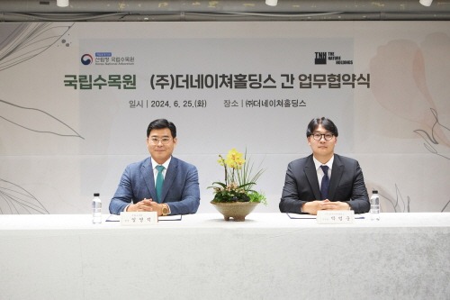 산림청 국립수목원은 ㈜더네이쳐홀딩스와 오늘(25일) 어린이들의 숲과 생물다양성 중요성 인식 증진과 키즈탐험대 운영 확대를 포함한 수목원 교육 분야 공동 발전을 위해 업무협약을 체결했다.