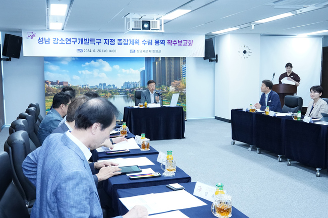 성남시는 26 일 오후 2 시 시청 제 1 회의실에서 시스템반도체 기업 지원을 위한 제도적 기반 마련과 기술사업화를 통한 R&D 활성화를 위한 ‘ 성남 강소연구개발특구 지정 종합계획 수립 용역 착수보고회 ’ 를 개최했다 .