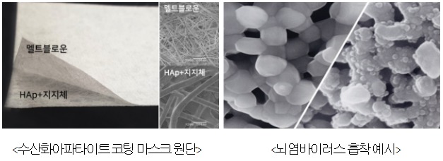 신개념 마스크 기술공모의 첫번째 수상작은 ㈜베이서스가 제안한 바이러스 흡착형 마스크 기술이다. 본 기술은 강력한 흡착기능이 있는 수산화아파타이트(HAp+)를 코팅한 원단을 KF80과 K94 마스크에 적용하는 방식이며, 기존 보건용 마스크에 바이러스 흡착기능을 추가한 코로나19 특화형 마스크 기술에 해당한다.