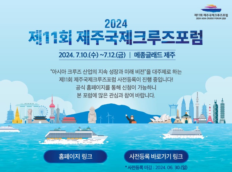 제주특별자치도와 해양수산부가 주최하고 제주관광공사가 주관하는 ‘제11회 제주국제크루즈포럼’이 오는 10일부터 12일까지 3일간 메종글래드 제주에서 개최된다.