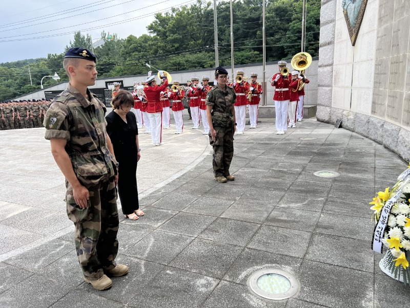 프랑스 생시르육군사관학교 생도들이 수원 ‘프랑스군 참전 기념비’를 찾아 6.25 전쟁에 참전한 프랑스 용사들을 추모하고 헌화했다.