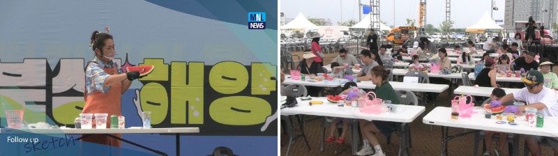 ▲ '화채에 빠질 수박애' 프로그램에 참여한 가족들과(우) 진행자(좌)