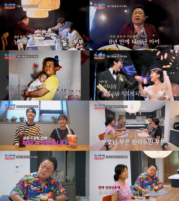 귀하디 귀한 외동딸의 첫 아이 임신 소식을 접하고, ‘예비 조부모’가 된 이용식 부부의 ‘리얼 반응’은 9월 23일(월) 밤 10시 ‘사랑의 모든 순간’을 보여주는 리얼 다큐 예능 TV CHOSUN ‘조선의 사랑꾼’에서 첫 공개된다. (사진제공 = TV CHOSUN 조선의 사랑꾼)