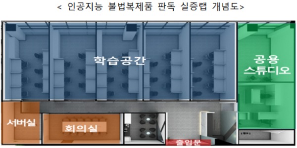 총 면적 288㎡의 규모로 조성된 실증랩은 제품의 디자인을 모방한 위조상품을 식별할 수 있도록 진성상품의 사진, 도면 등 관련 데이터를 가공·학습할 수 있는 시설과 장비를 제공한다.