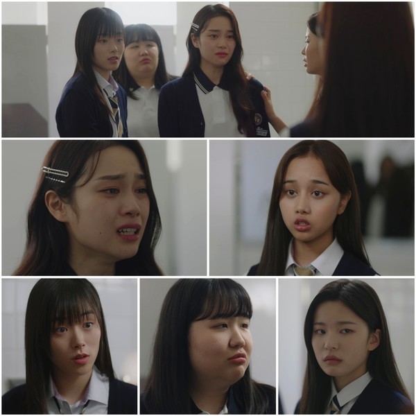 김예리와 전미나의 날선 신경전, 그리고 이를 바라보는 친구들 박지유X서아라X여은수의 걱정스러운 눈빛이 시선을 사로잡는다.
