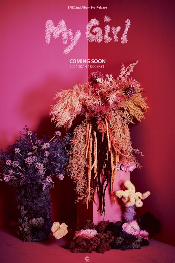 포스터를 통해 선공개곡 ‘My Girl’의 발매일시가 오는 14일 오후 6시로 베일을 벗었다. 달콤한 곡명과 함께 핑크와 보라색을 띤 꽃들이 이펙스만의 유니크한 러브송을 예고하고 있다.