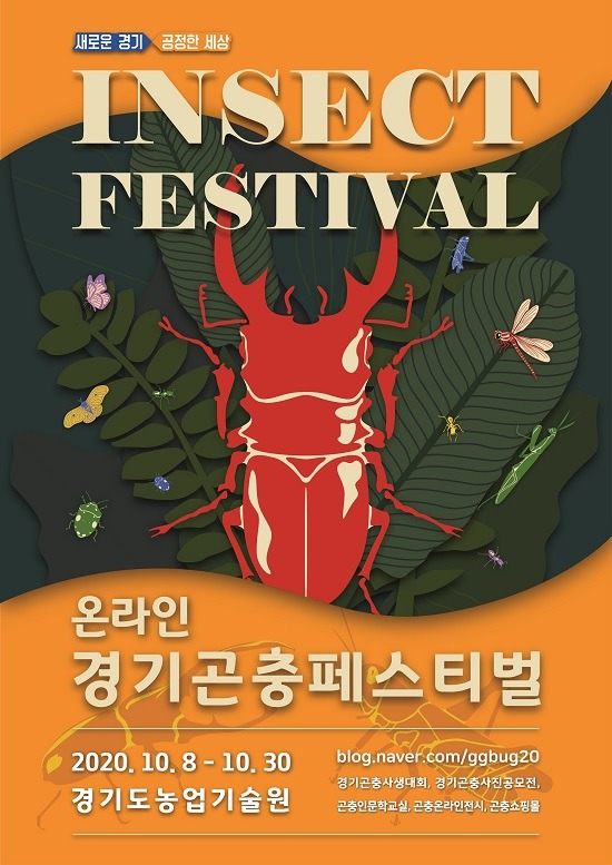 경기도농업기술원이 10월 8일부터 30일까지 가정에서 곤충과 가까워질 수 있는 ‘2020 온라인 경기곤충페스티벌’을 연다. 사회적 거리두기를 고려해 지난해와 달리 올해는 비대면으로 진행된다.