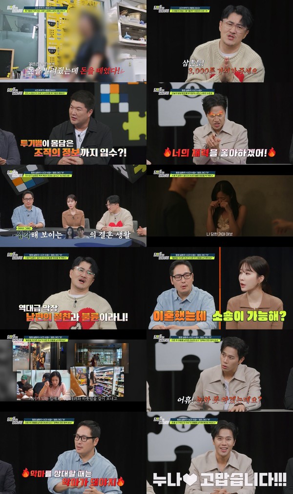 이에 아이 엄마는 "당신 때문에 아주 망신당해서 얼굴을 들고 다닐 수 없어! 애 엄마인 내 권리 제대로 찾을 거니까 앞으로 아이 양육비 다달이 천만 원씩 보내"라며 협박했다. 어처구니없는 상황에 손준호는 "녹화 못 하겠는데요?"라며 이를 갈았다.