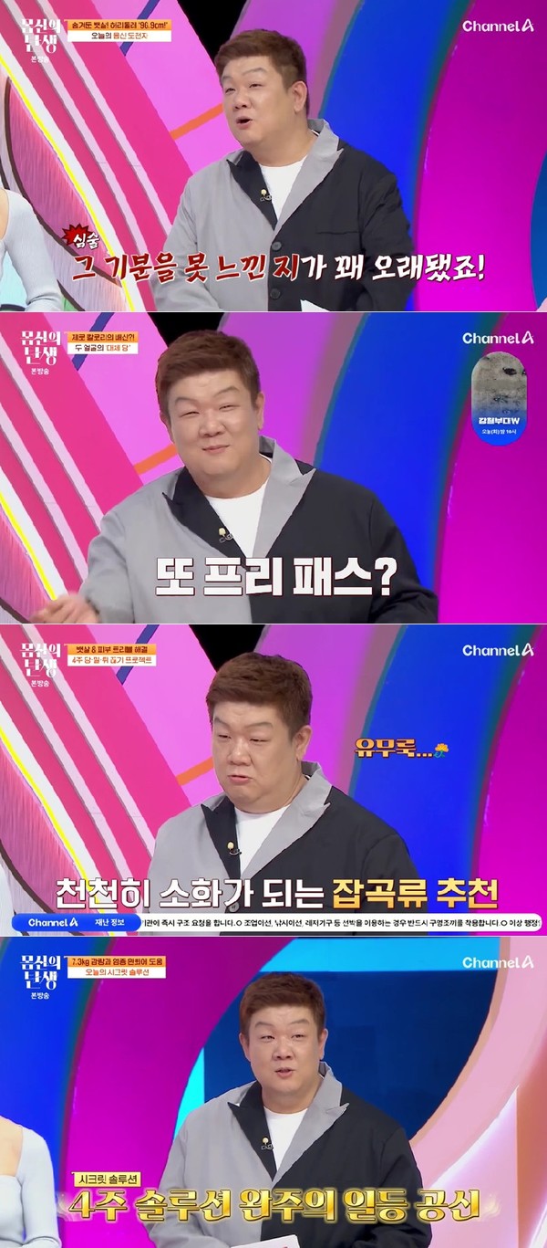 허리둘레 96.9cm를 지닌 도전자가 100cm를 앞두고 솔루션에 나왔다는 사실이 밝혀지자 그는 “100kg 넘어간 사람으로서 넘는 게 어렵지 그 자리에서 더 치고 갈 수 있거든요”라는 한마디로 폭소를 유발했다.