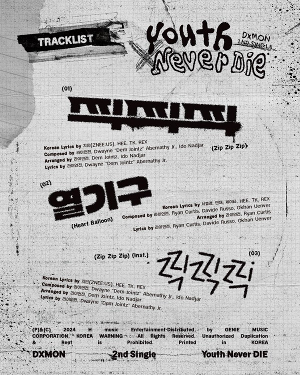 다이몬은 17일 0시 공식 SNS를 통해 두 번째 싱글 앨범 'Youth Never DIE(유스 네버 다이)'의 트랙리스트 이미지를 공개했다.