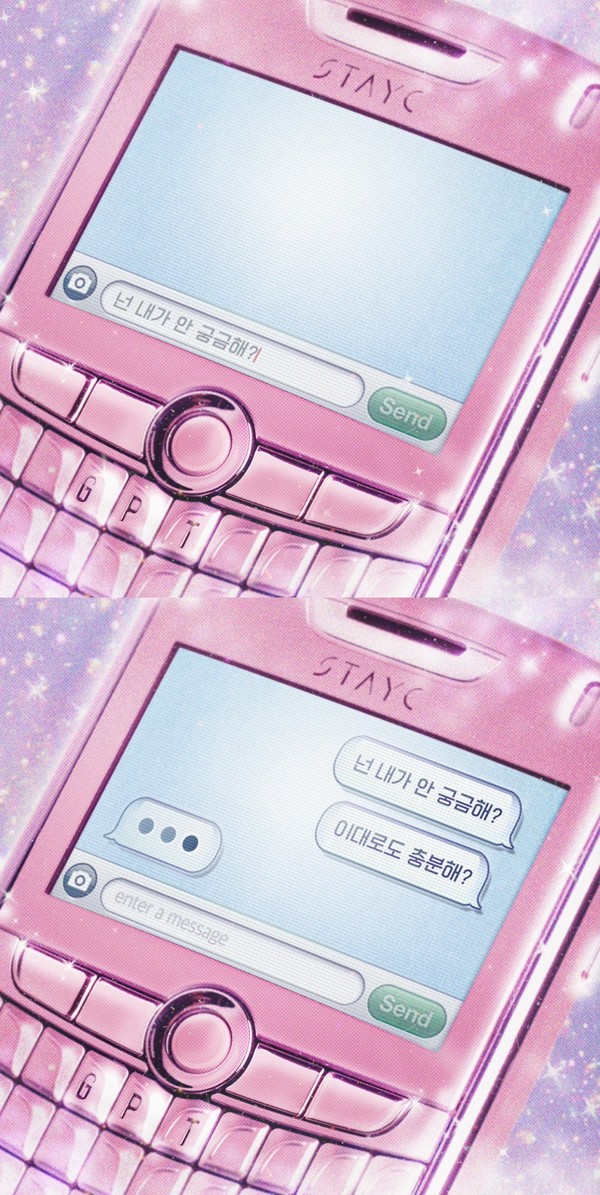 공개된 영상은 아기자기하면서도 키치한 핑크빛 핸드폰 이미지로 시선을 끌고 있다. 이어 짝사랑 중인 상대에게 "넌 내가 안 궁금해?" "이대로도 충분해?"라는 메시지를 보내는 장면으로 곧 다가올 스테이씨 컴백에 대한 기대감을 더했다.