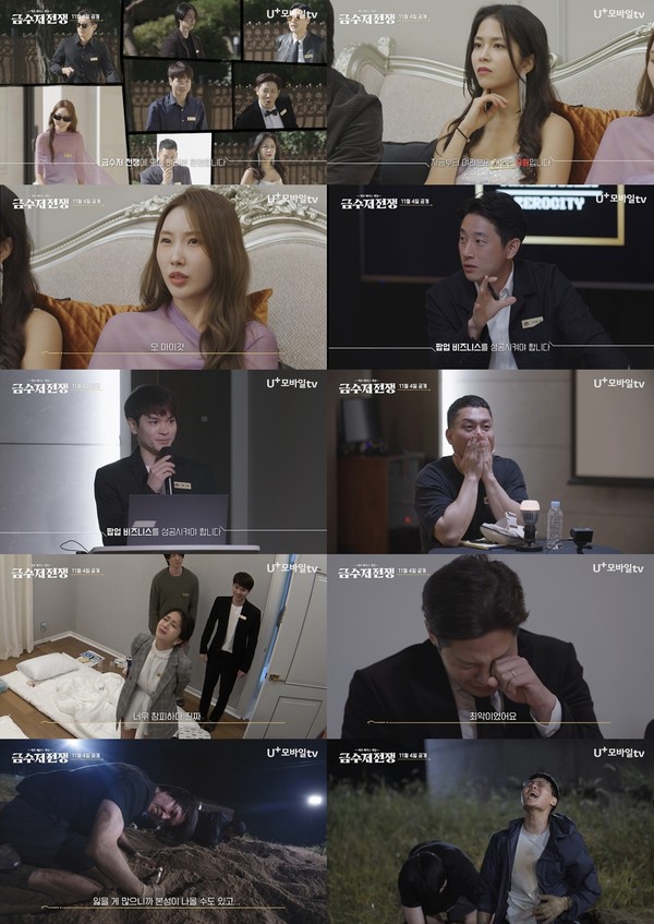 이런 가운데 '금수저 전쟁' 측은 '금수저'들의 평소 초럭셔리 일상부터 '제로시티' 입성, 그 안에서 펼쳐지는 동맹과 견제, 처절한 눈물과 밑바닥 싸움까지 서바이벌의 모든 것을 함축한 메인 예고를 공개해 시선을 강탈한다.