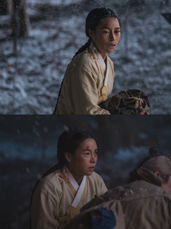 눈보라가 몰아치는 어두운 밤길, 봇짐을 꼭 끌어안은 구덕이의 초라한 행색과 두려움 가득한 눈빛에서는 신분에 앞서 한 인간으로서 생존하기 위한 처절함이 생생하게 느껴져 더욱 눈길을 끈다.