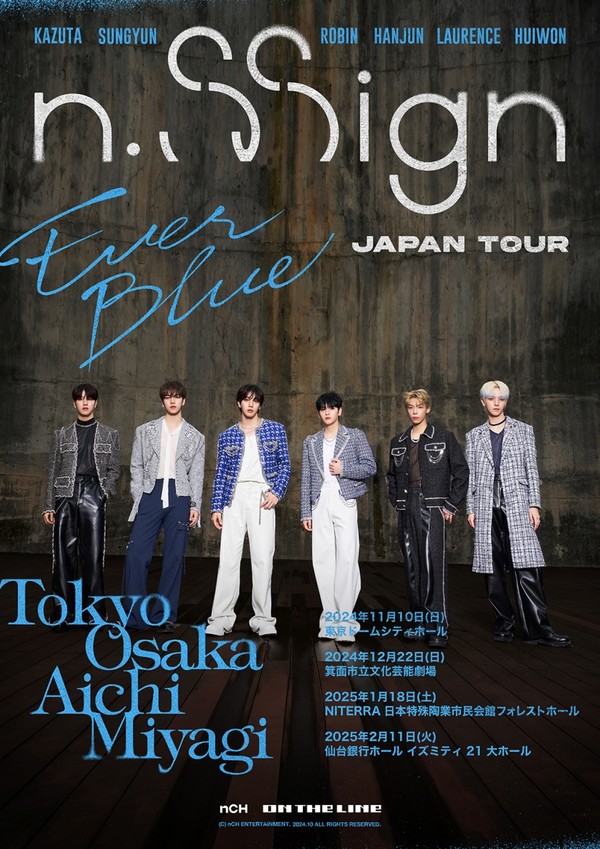 소속사 nCH 엔터테인먼트는 30일 "엔싸인이 오는 11월부터 2025년 2월까지 일본 4개 도시를 순회하는 홀 투어 콘서트 'n.SSign Japan Tour [EVERBLUE](엔싸인 재팬 투어 [에버블루])'를 개최한다"고 밝혔다.