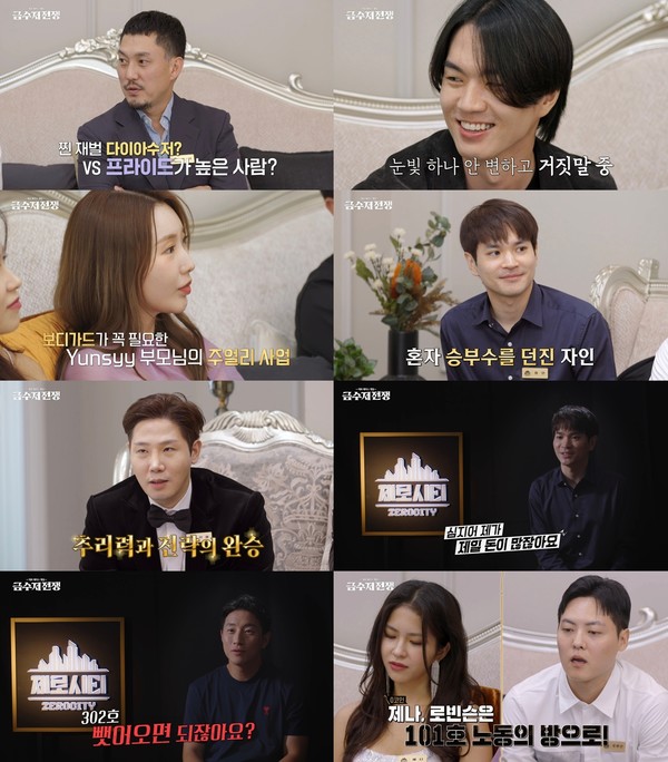 4일 첫 공개된 U+모바일tv '금수저 전쟁'에서는 공짜 없는 가상세계 '제로시티'에 입성한 대한민국 0.1% 금수저 8인의 모습이 공개됐다.