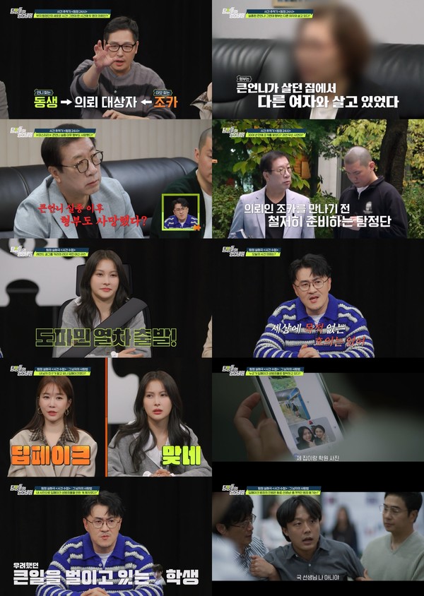 또, '사건수첩-그 남자의 사랑법'에는 카라의 영원한 리더 박규리가 게스트로 출연, 딥페이크를 이용한 ‘로맨스 스캠’ 사연을 함께했다.