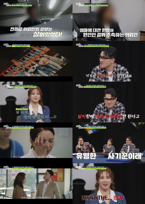그리고 "형부가 (언니의 실종 뒤) 바로 다른 여자를 데리고 와서 살았다는 건, 그 전에 여자가 있었다는 것 아니냐"며 재차 질문했다. 심지어 의뢰인은 "형부가 왜 연락을 한 번도 안 했냐. '집에는 왔느냐'고 저한테만이라도 전화해야 했다"며 분개했다.